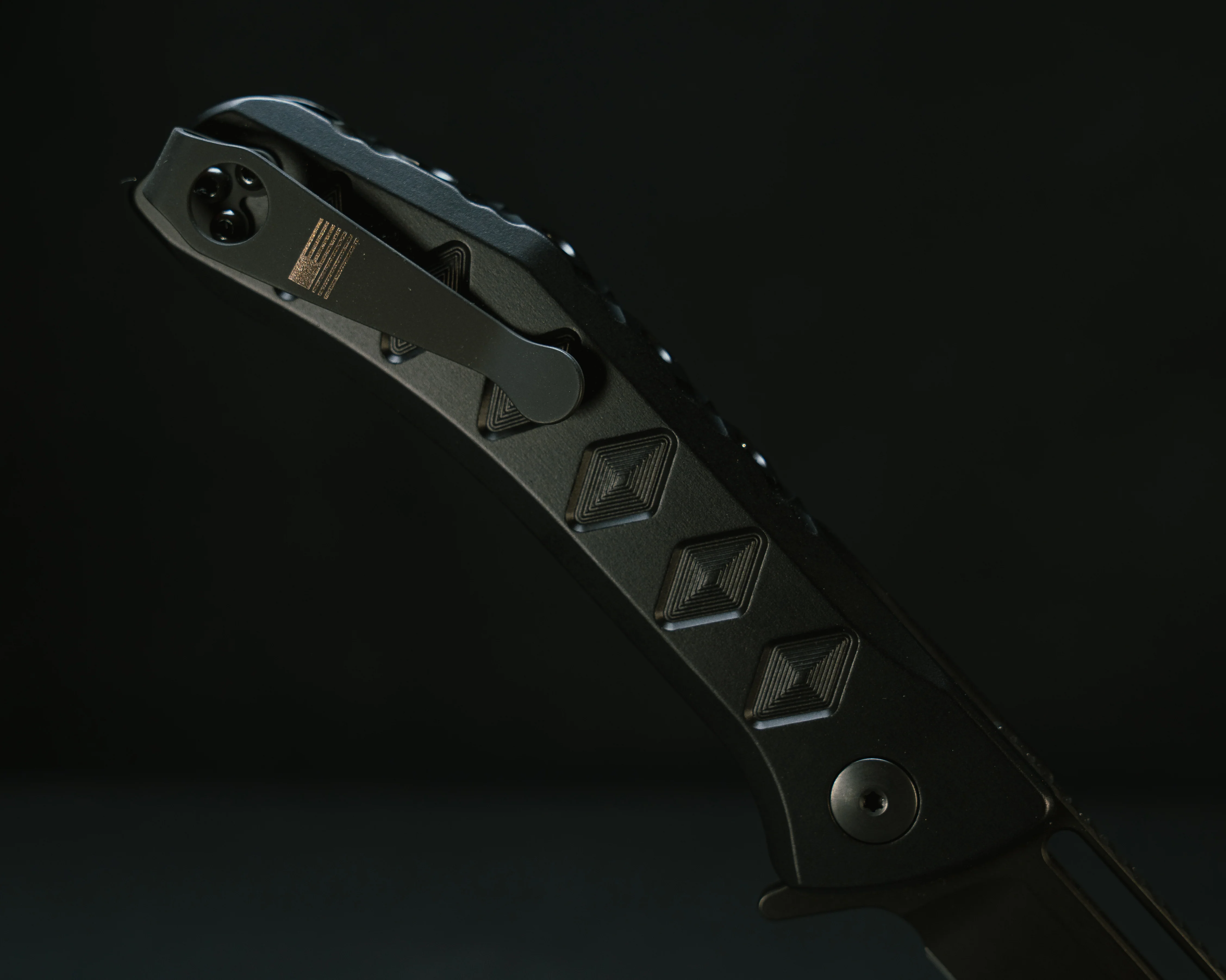 Kwaiken Folder- Anodized Black Handle, Black Nitride Blade, Textured Grip, Deep Carry Pocket Clip